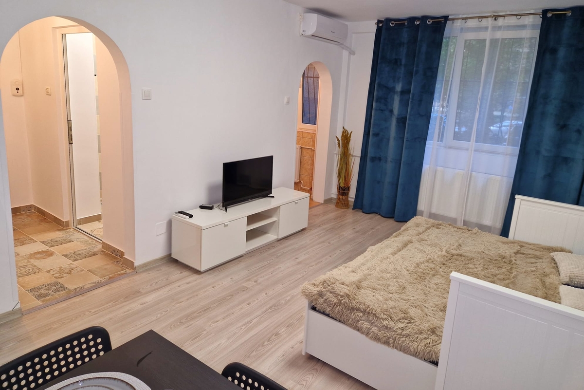 Ofer spre inchiriere, garsoniera, vis a vis parcul Tineretului,stradal, este renovat recent, prima inchiriere dupa renovare, totul este nou. Masina de spalat cu uscator, aer Conditionat wi fi, Bucatarie utilata cu plita pe gaz, cuptor electric, mobilier nou. Baie walk in shower, internet wi fi. Se ofera contract ANAF .