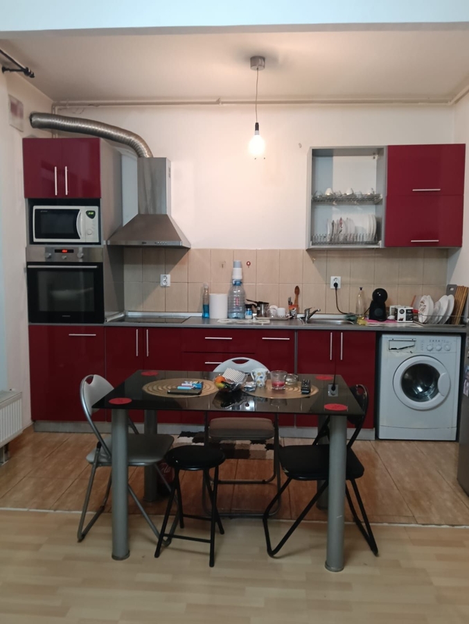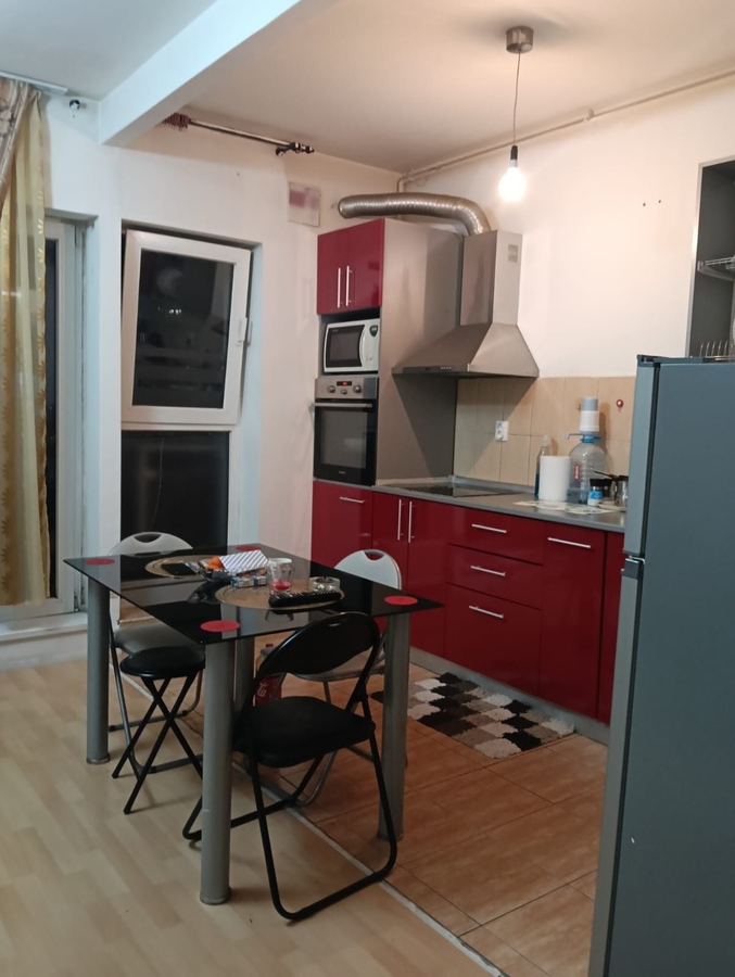 Garsoniera este complet mobilata si utilata, cu bucatarie cu frigider, plita, hota
