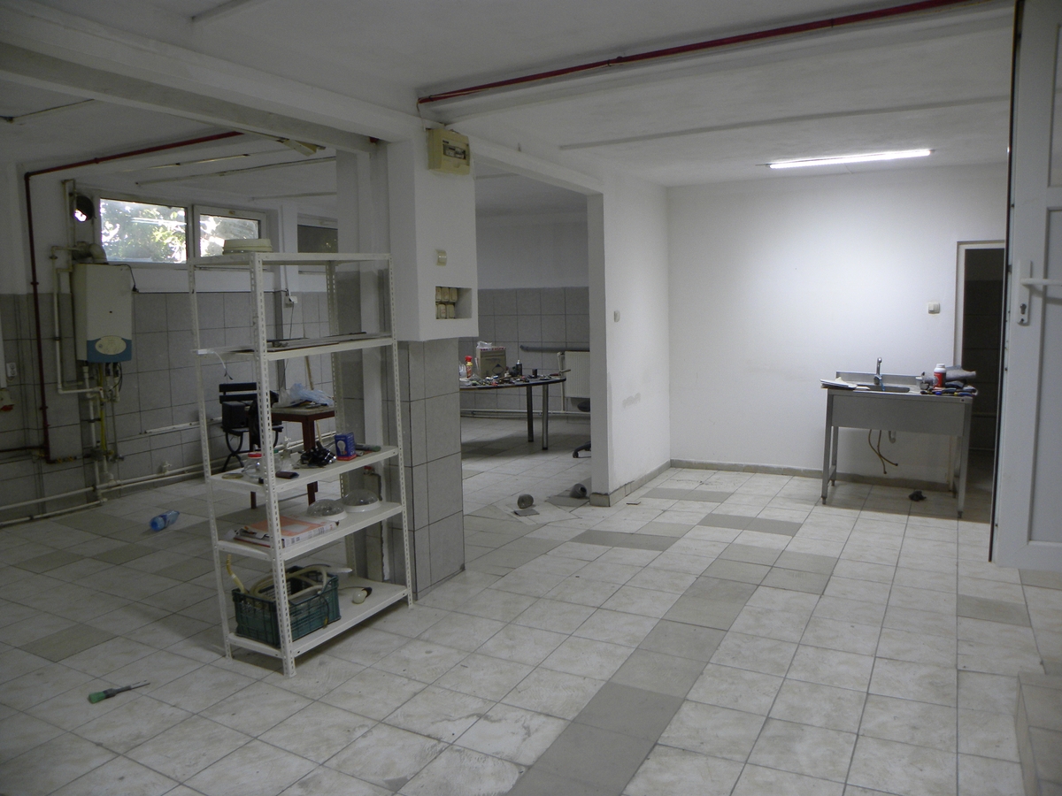 La cinci minute de Carefour Orhideea, in zona Giulesti, sector 1, la curte, 150 mp, gresie, faianta, 380v, gaze, apa, contorizat separat, grup sanitar, ofice, pret negociabil,curat, zugravit, igenizat, in spatiu exista un cuptor de pita, pe lemne nefolosit. Relatii la tel. Spatiu poate fi modificat dupa necesitati.