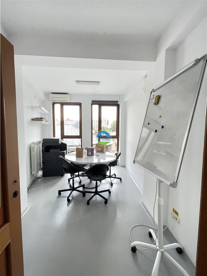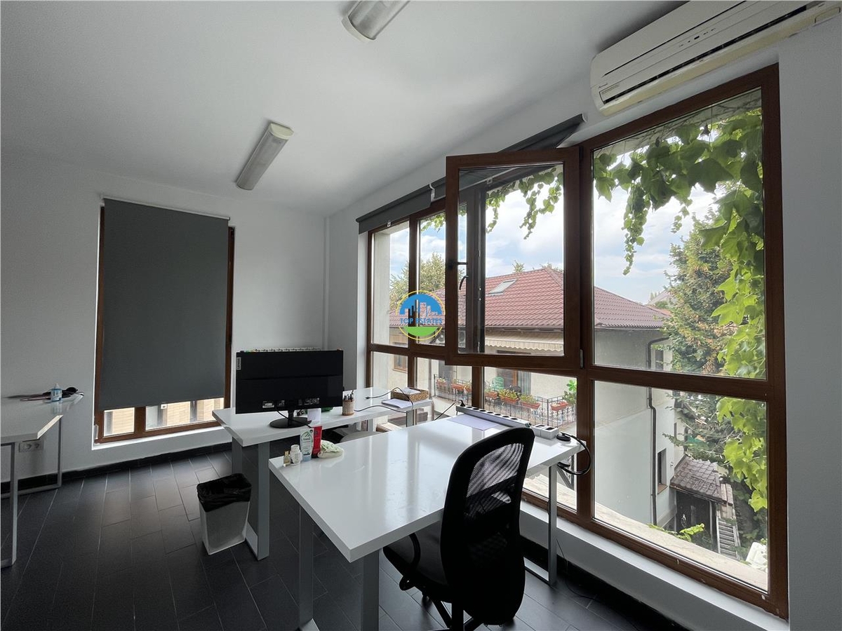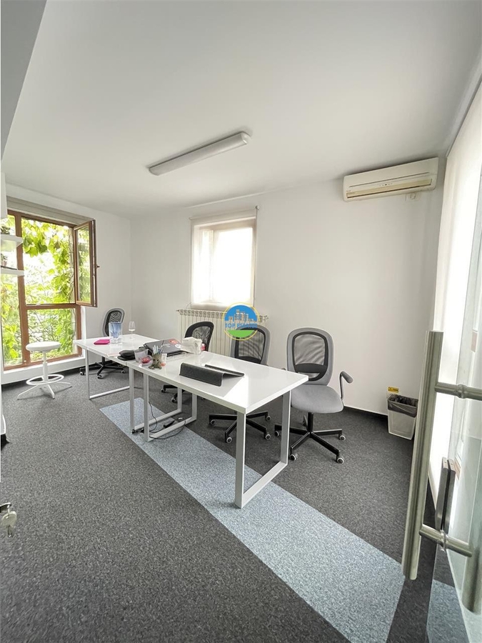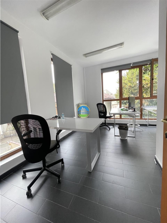 Va propunem un spatiu de birou spre inchiriere in zona Gradina Icoanei - Bucuresti, pe strada Icoanei. Spatiul este situat la etajul 2 al unui imobil construit in 2012, avand 4 incaperi din care o sala mare,un grup sanitar, bucatarie. Suprafata totala a etajului este de 140 mp, iar cea utila a spatiului este de 116 mp. Imobilul are structura din beton cu cadre, iar spatiul este proaspat renovat. Ca si dotari are centrala termica individuala pe etaj, aer conditionat, este contorizat separat. Nu sunt costuri de mentenanta separate de pretul chiriei. Pentru spatiu de fumat exista acces pe terasa imobilului. Disponibilitatea unui loc de parcare este in curtea imopbilului contra cost. Disponibilitatea spatiului este de la 1 octormbrie. Pretul este de 1600 euro tva/ luna usor negociabil.