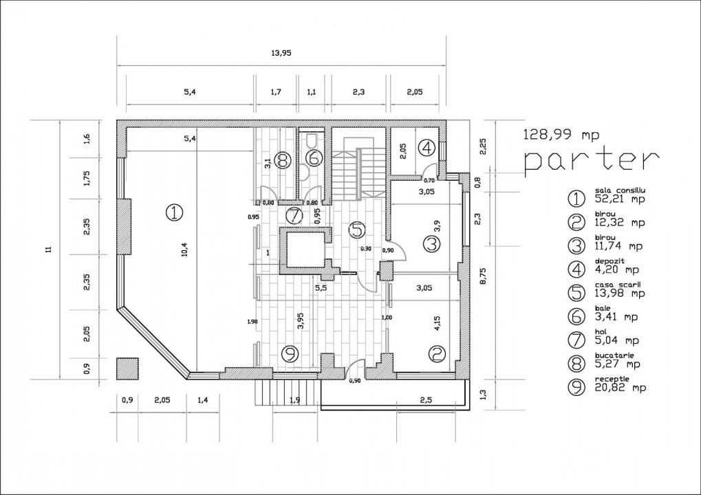 π Suprafete: Suprafata totala: 129 mp / Suprafata utila: 116 mp (fara casa scarii)