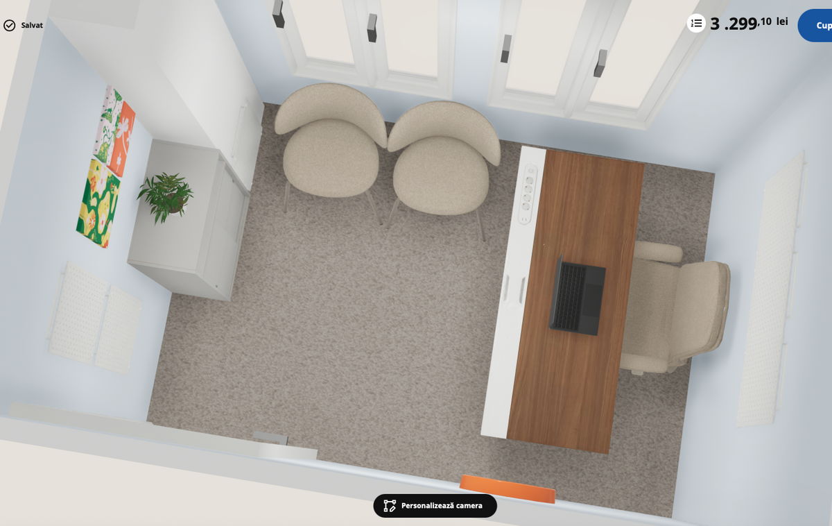 • Se poate mobila ca in pozele din planificatorul de mobilier, sau alta configuratie.