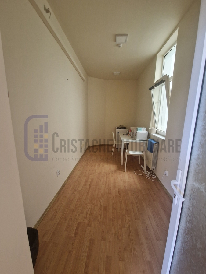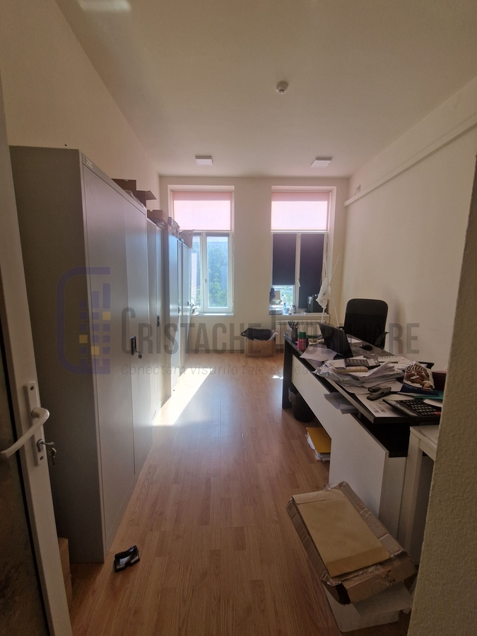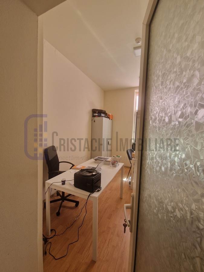 Spatiul este compartimentat, avand 7 camere tip birou, de diferite dimensiuni, 1 bucatarie, 2 grupuri sanitare, un hol generos unde poate fi amenajata o receptie/ sala de asteptare. Viitorilor chiriasi le vor fi alocate 2 locuri de parcare, in curtea cladirii.
