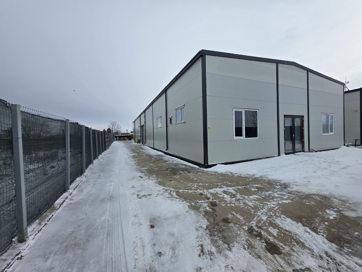 Hala este noua din euro profile HEA si IP-uri, panouri sandwich Topanel rezistente la foc, termopane Rehau, sapa elicopterizata si vopsea expoxidica, usa industriala 3000 x 3000, spatiu de birouri 50 mp, grup sanitar 7 mp, CCTV 3 camere exterioare si 3 interioare, curent trifazic, apa si canal. Hala dispune de parcare interioara.