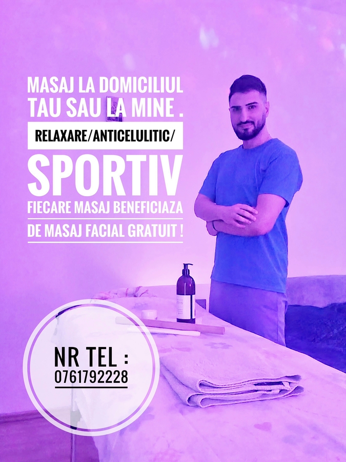 De ce sa ma alegi? Vrei sa vorbim despre orice, o vom face. Vrei sa glumesti, cu drag. Vrei sa dormi in timpul sedintei? Nu vei fii deranjat/a cu intrebari inutile. O ora, este o ora, nu ca in alte parti. Nu va lasati pacaliti de anunturile false. Peste 1000 de masaje efectuate la activ. Fost sportiv! Preturile se pot modifica usor pentru deplasari mai lungi/ ore tarzii.