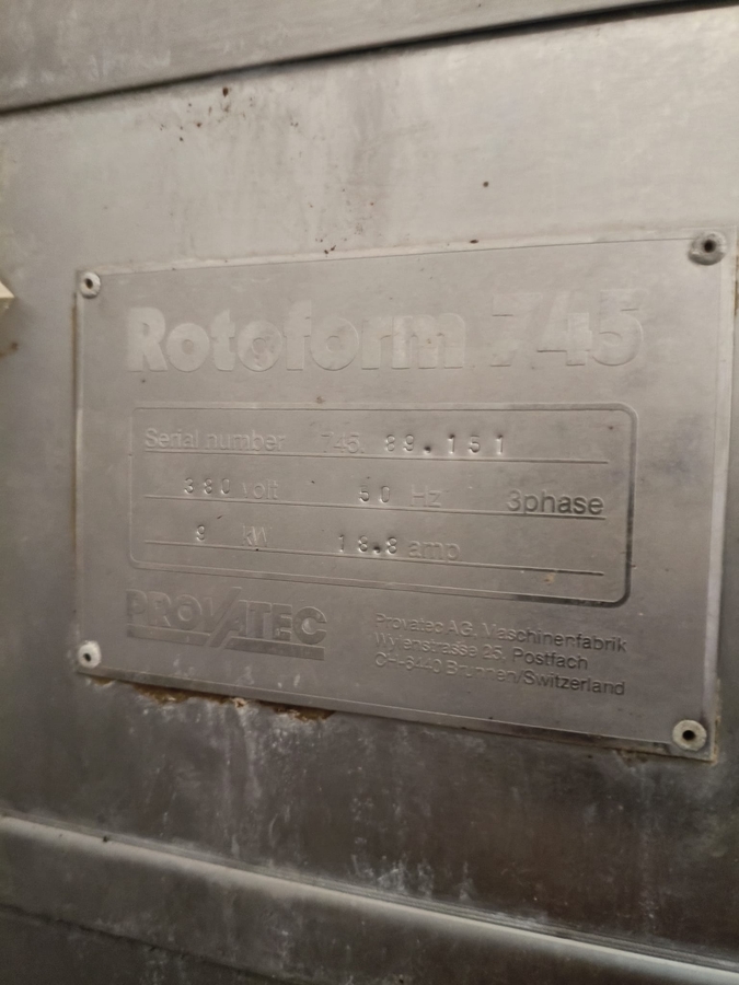 Masina de format -model Rotoform 745, in stare de utilizare. Poate fi folosita pentru prepararea rapida si eficienta a diferitelor tipuri de produse alimentare sau chimice granulate si de industria carne --.hamburgeri, snitele, falafel, snitel, chiftele pui, vita ...