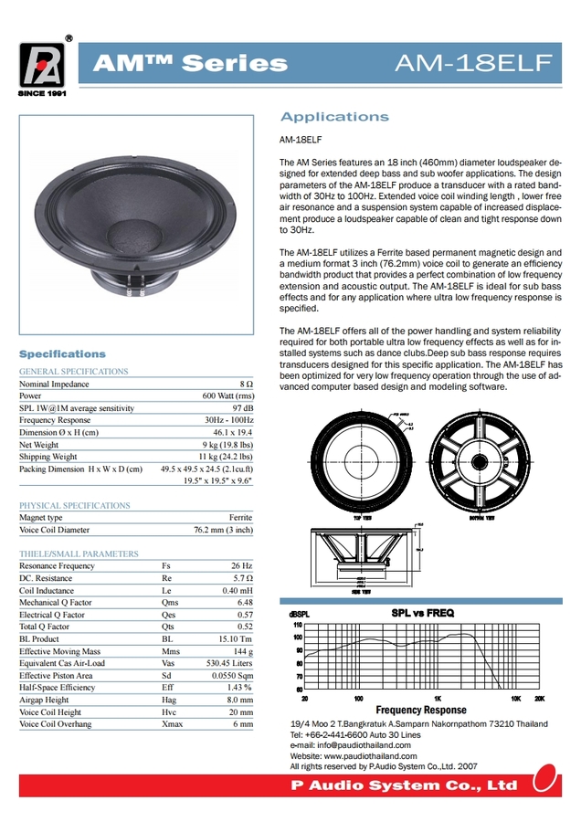 Difuzoare Power Audio AM - 18ELF 18 inch (46cm) 600W RMS - 1200W program