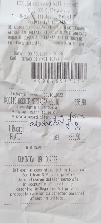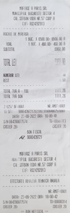 - rochie+voal(vezi bon) 6960 ron,curatare rochie(vezi bon) 336 ron