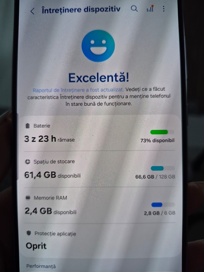 Caracteristici: 128 GB spatiu de stocare, 6 GB memorie RAM si 4500 mAh capacitate baterie.