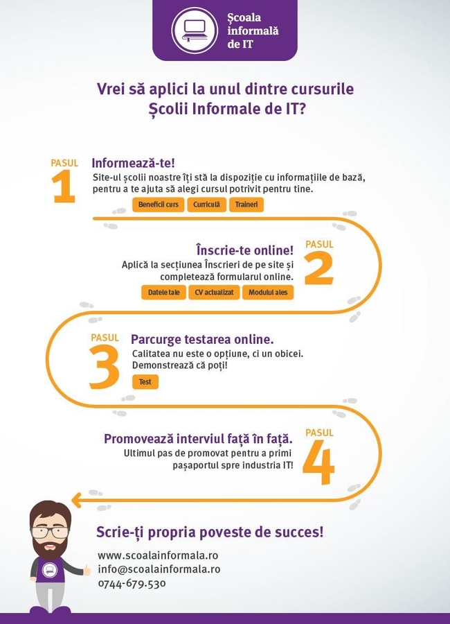 Cea mai ambitioasa platforma de educatie non-formala si reconversie profesionala din Romania, lider in domeniul educatiei alternative, Scoala informala de IT este locul unde viata oamenilor se schimba in bine