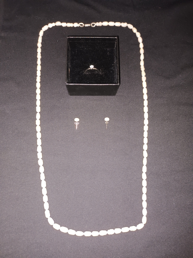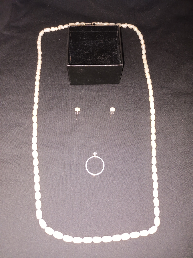 Set perle cercei+lant + inel inox calitatea 1 stare buna