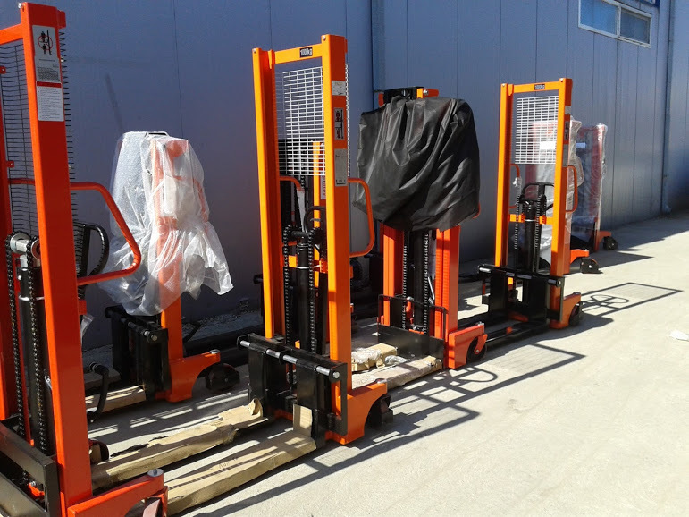 Fabricant vand din stoc stivuitor manual cu ridicare hidraulica/electrica, CONSTRUCTIE SOLIDA,ROTI DIN FIER CU RULMENTI ACOPERITE CU POLIURETAN, GREUTATE PROPRIE 195 - 280 KG avem pe stoc mai multe modele constructive, cum ar fi: