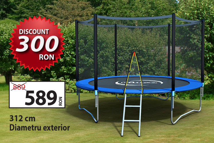 Trambulina cu diametru exterior 312 cm/ 3,12 m. Inaltime totala 2.17. Greutate suportata 170 kg