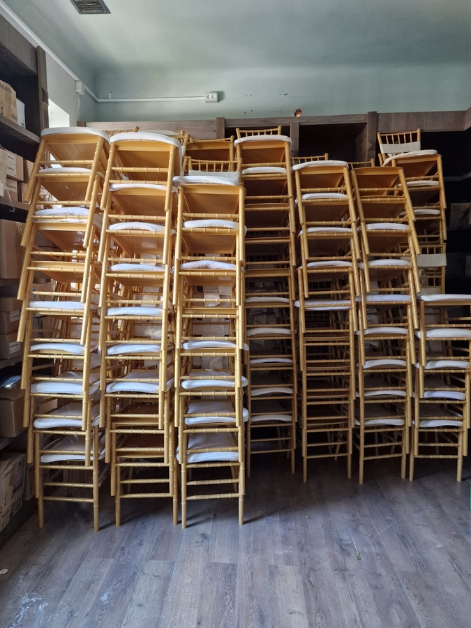 Vand scaune Chiavari, tacamuri, farfurii, pahare