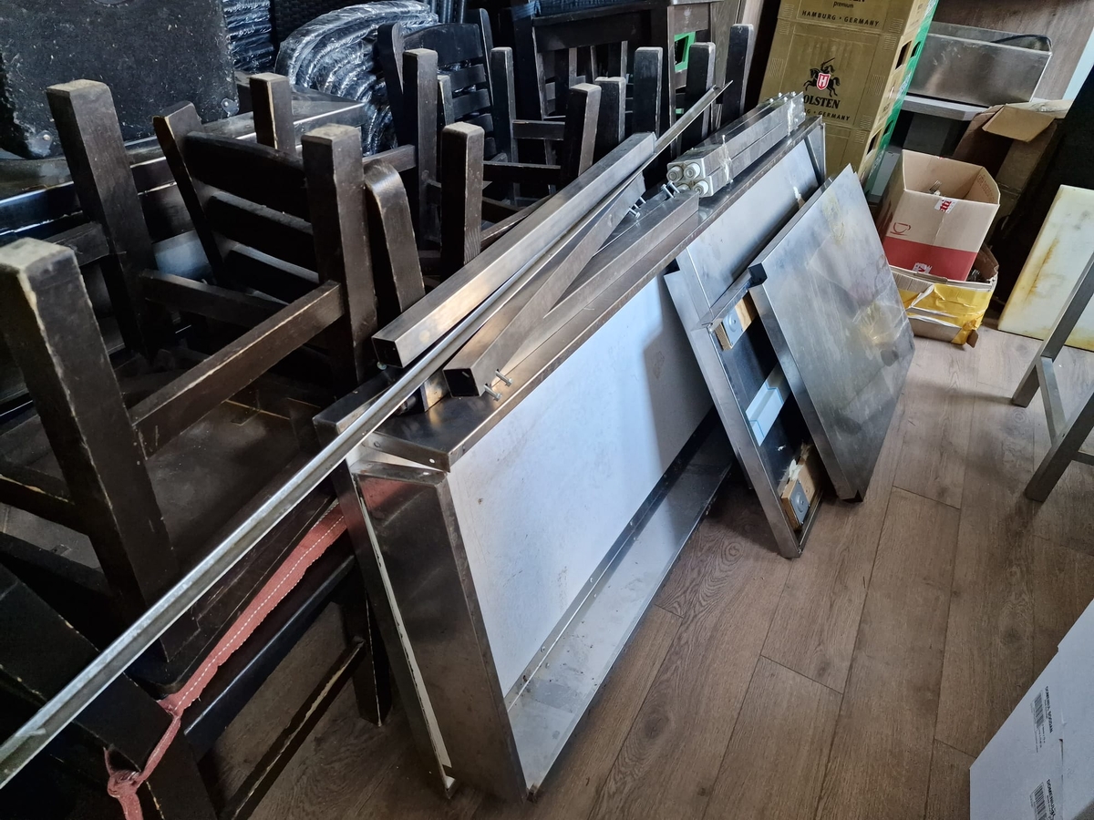Vand scaune chiavari aurii 350 buc-65 lei, farfurii albe 30 cm 1500 buc-4lei, cutite si furculite baza 1600 buc-4 lei, pahare vin, apa, tumblere, sonde 2000 buc -2 lei la gramada, raft inox bucatarie 350 lei, masa inox 2100 cm- 1000 lei, masa inox 1m - 600lei