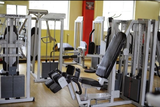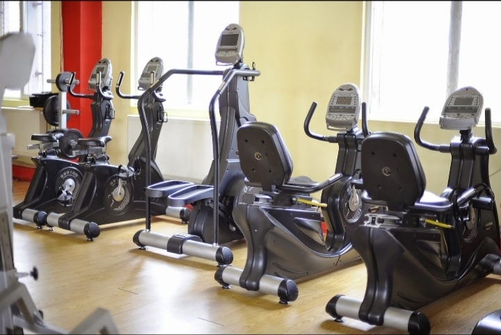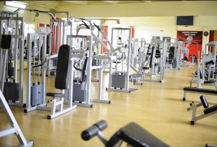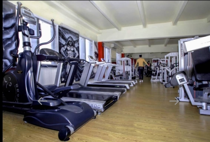 Sala este compusa din: aparate individuale pentru antrenament; set complet gantere cu greutati intre 5 kg-35 kg; set complet de discuri cu greutati intre 2,5 kg-25 kg; bari olimpice; stepere electrice 3 bucati; biciclete cu șezut spatar 3 bucati; banci hipertensii; aparate abdomen; banci inclinate; aparate cvadriceps; 100 vestiare