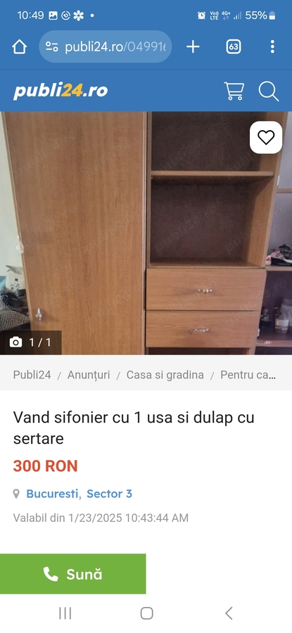 Vand sifonier cu 1 usa si dulap cu sertare.