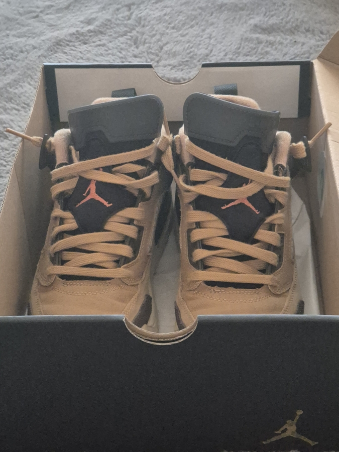 Vand Sneakers Jordan Spizike Low, editia "Flax", un model hibrid iconic ce combina elemente din cinci siluete clasice Air Jordan. Pantofii sunt realizati din materiale premium in nuante de maro si negru, oferind un look deosebit si un confort excelent pentru purtarea zilnica.
