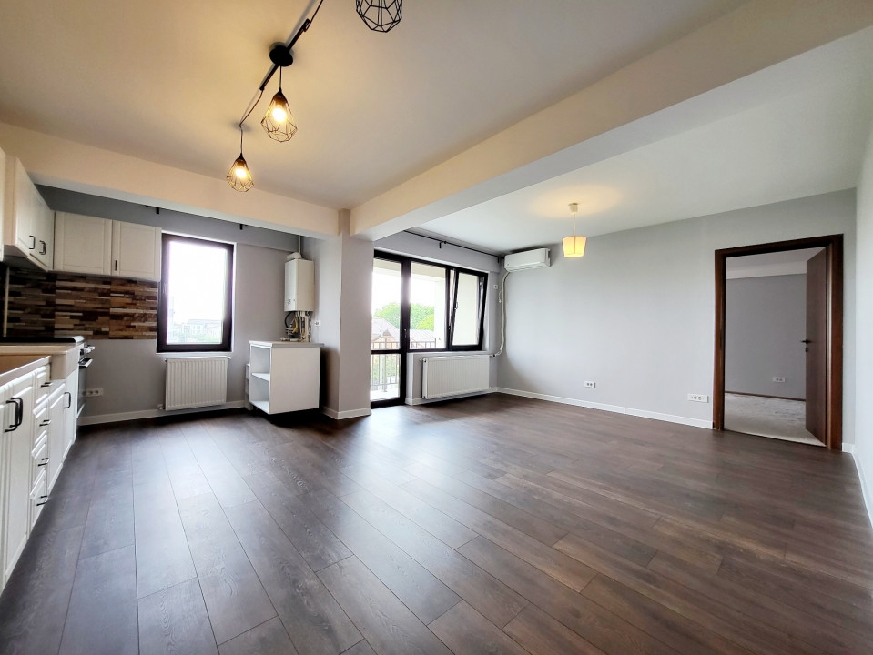 Spatiile interioare sunt generoase si practice, indiferent de incapere ( vezi schita din galeria foto). Zona de zi este primitoare, Bucataria deschisa cu Livingul insumand aprox 29 mpu. Configuratia apartamentului permite separarea Bucatariei, gratie ferestrei ce deserveste zona de gatit. Din Living accesezi Dormitorul patrat de 18 mpu. Baia este de asemenea incapatoare, avand o suprafata de 6 mpu. Holul este de asemenea util, permitand amplasarea unor corpuri de depozitare.