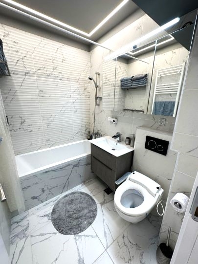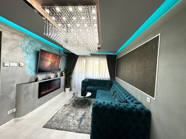 apartament spectaculos, nu se poate descrie in cuvinte, dotat atat cu incalzire in pardoseala cat si cu radiatoare, lux, ultrafinisat, se vinde complet mobilat si utilat etaj 1/8, scara impecabila