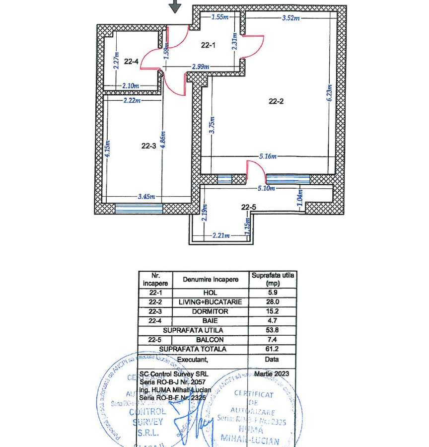 Optiuni interior: Apometre Balcon Contor gaze Izolatie termica Renovat recent Repartitoare caldura Usa metalica