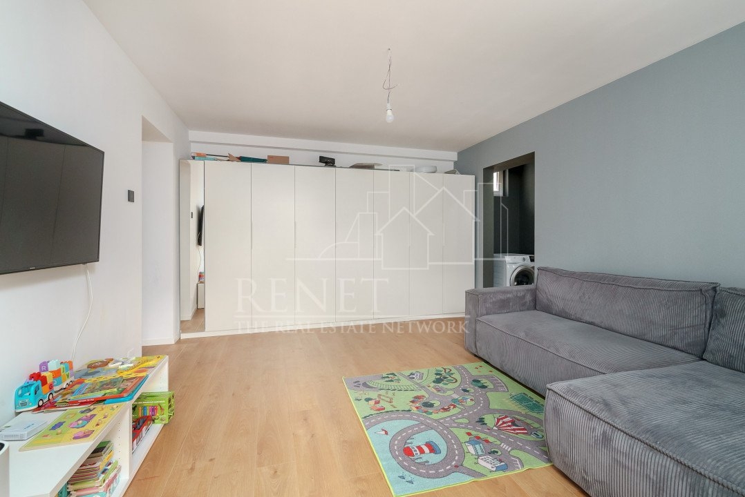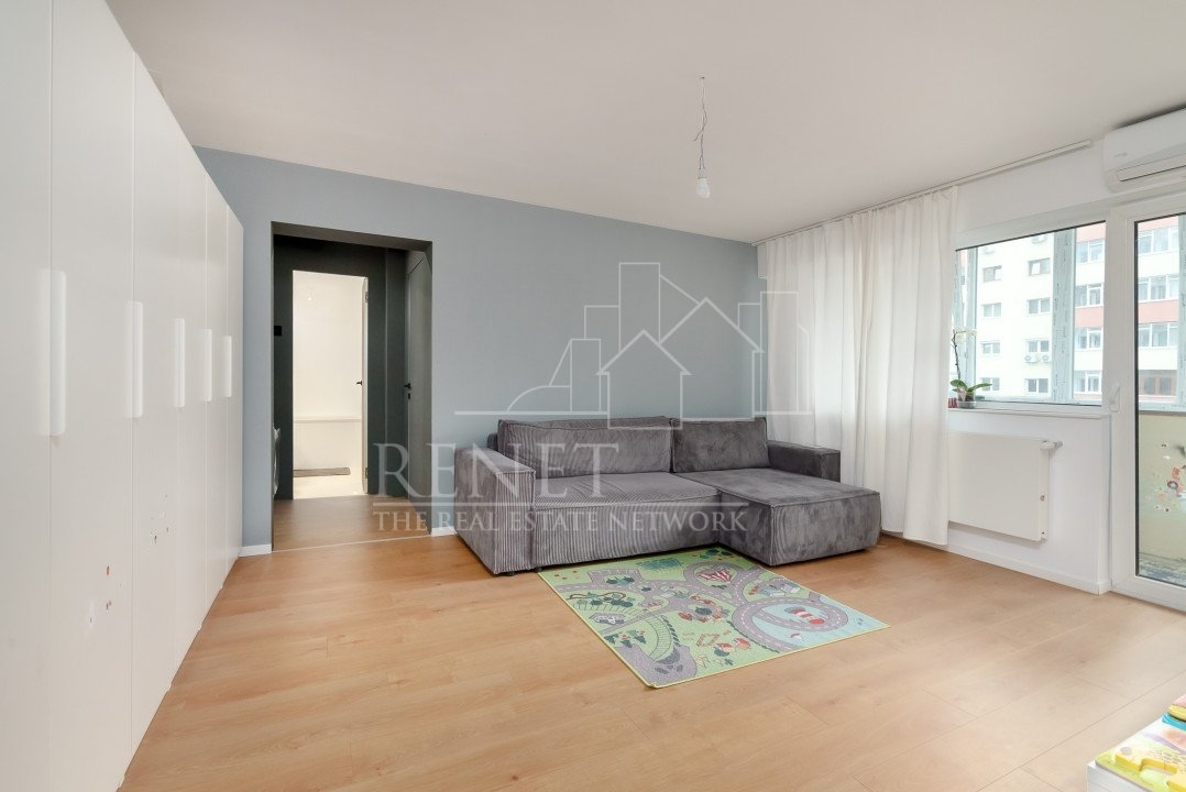 Apartament 2 camere situat stradal pe Calea Mosilor, in singurul bloc de 4 etaje, aflat la doi pasi de metrou Obor si intersectia cu Stefan cel Mare si Mihai Bravu, intr-un bloc foarte civilizat, reabilitat, construit la inceputul anilor '80 doar cu cate doua apartamente pe palier. Apartamentul semidecomandat cu o suprafata utila totala de 57mp este renovat complet cu finisaje si dotari actuale, mult peste medie, cu o investite ce a atins valoarea de 35.000 euro. Cel mai important dispune de centrala proprie in condensatie Ariston Alteas One cu wi-fi. In plus bucataria se vinde complet mobilata si utilata, cu mobila Ikea, cuptor electric si plita Bosch, masina de spalat vase Whirlpool, combina frigorifica Indesit, masina de spalat rufe Aeg, si aer conditionat Ariston. O data cu renovarea s-a turnat sapa autonivelanta, s-au schimbat toate instalatiile, electrice, sanitare si termice iar pe langa reabilitarea exterioara, s-a montat pe tavan izolatie interioara cu vata minerala de 10cm si rigips iar peretele ce separa apartamentele a fost izolat fonic cu vata Acustik. Mai mult, apartamentul beneficiaza de finisaje speciale, foarte rar folosite in renovarile uzuale, dupa cum urmeaza : baia hidroizolata cu vopsea epoxidica, pardoseala finisata cu rasina epoxidica, iar peretii in zona obiectelor sanitare au montate panouri de plexiglass, cu baterii incastrate REA negru mat la dus si lavoar, chiuveta din Corian ( material antibacterian ) si wc incastrat Geberit, iar peretii in bucatarie sunt placati cu ardezie flexibila . Usile de interior sunt Filomuro cu tocuri de aluminiu incastrate si broaste magnetice, tamplaria interioara din aluminiu cu glafuri de marmura composit, usa de exterior Maco, parchet Good Home, intrerupatoare cu touch si prize din aceeasi gama cu rama sticla, calorifere Kermi atipice, si totodata in pretul de vanzare este inclus un dressing mare Ikea in sufragerie.