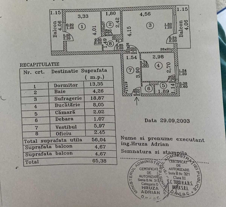 Alcatuit din 2 camere si dependinte, tip apartament semidecomandat, suprafata utila 56 mp, suprafata construita 67 mp.
