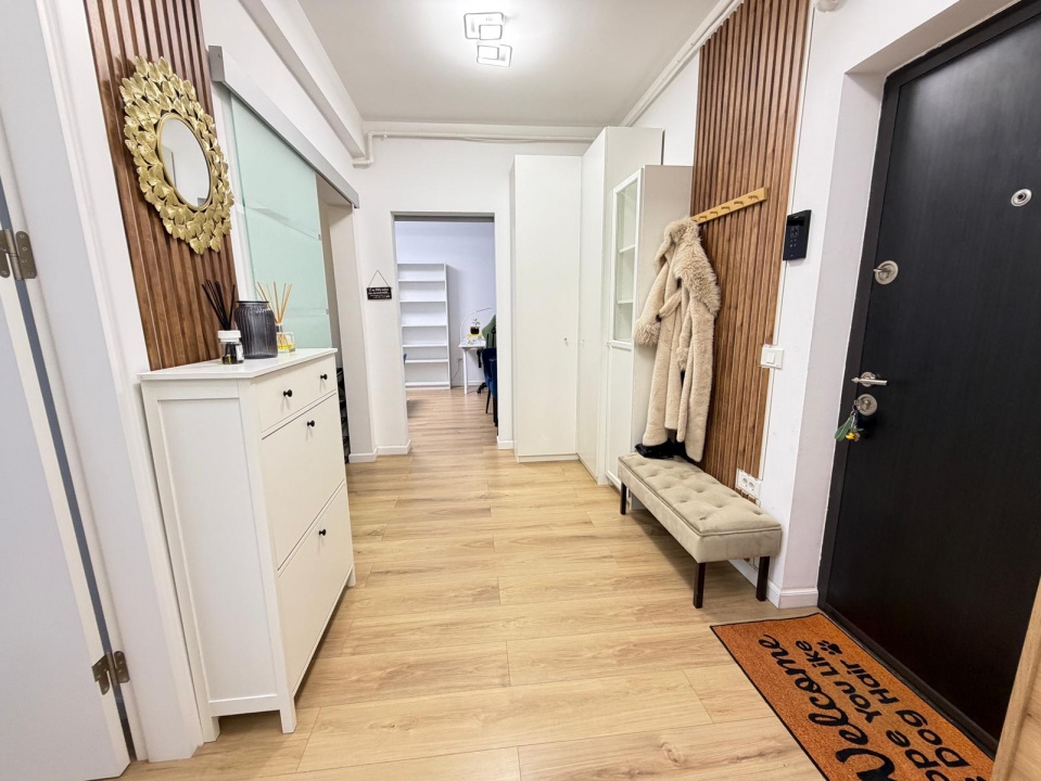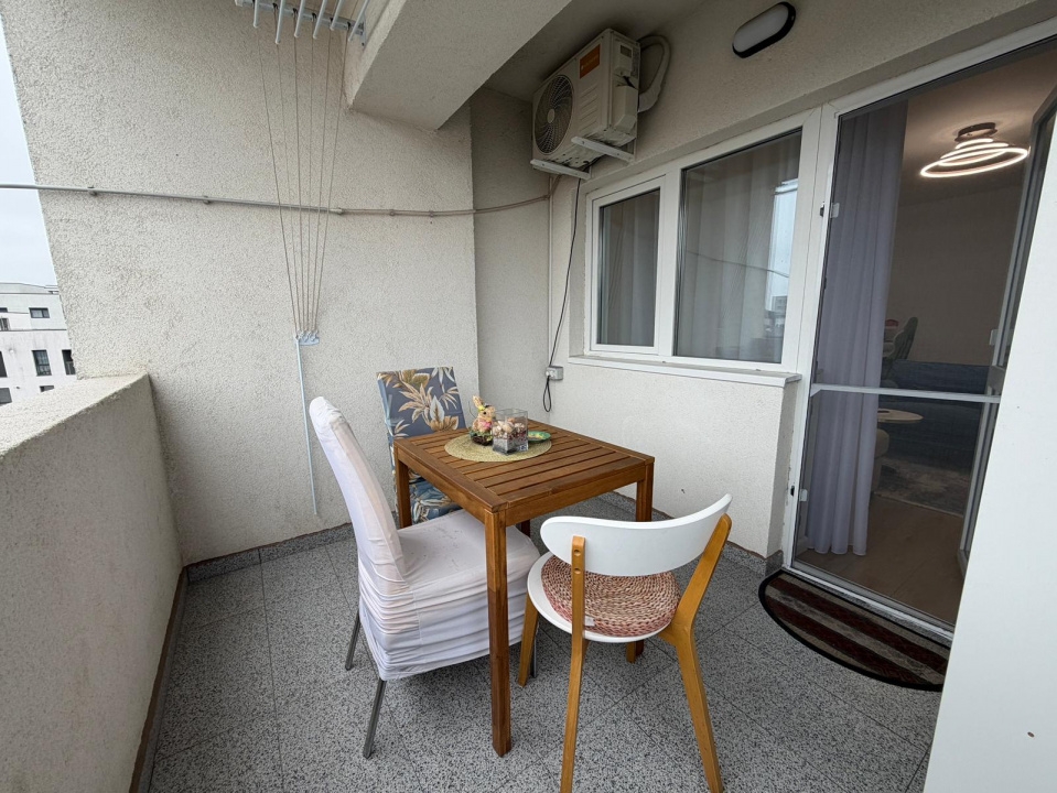 Apartamentul se vinde complet mobilat si utilat, dispune de numeroase spatii de depozitare si de un balcon ideal pentru relaxare, perfect inclusiv pentru cei care lucreaza de acasa.