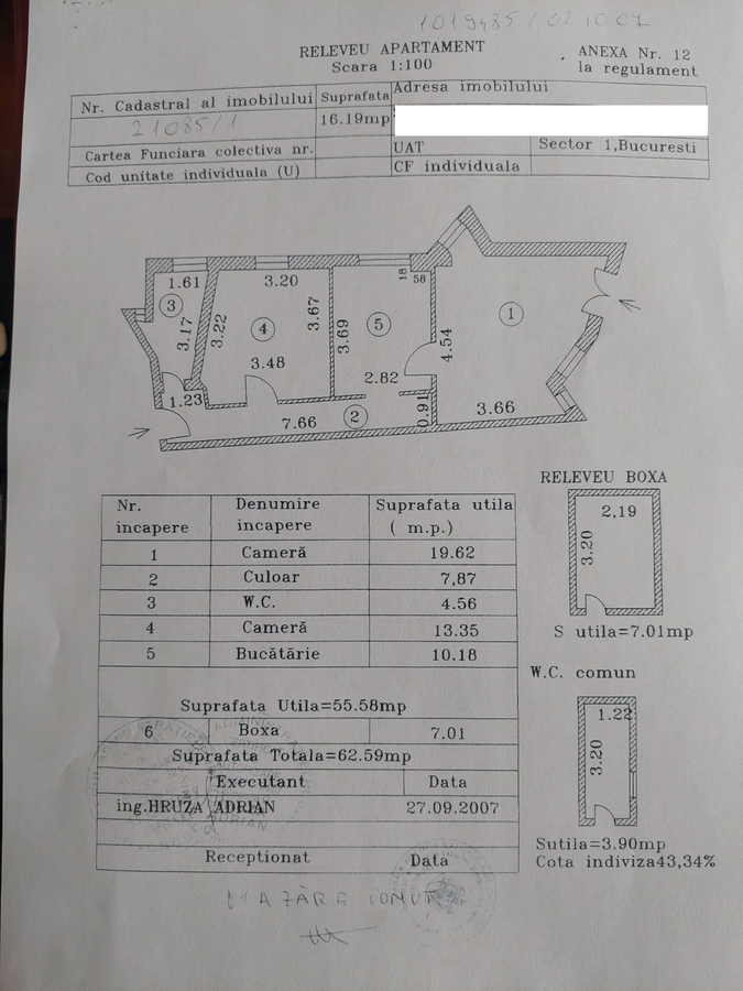 Optiuni exterior: Boxa subsol Interfon Structura beton M 6 min.