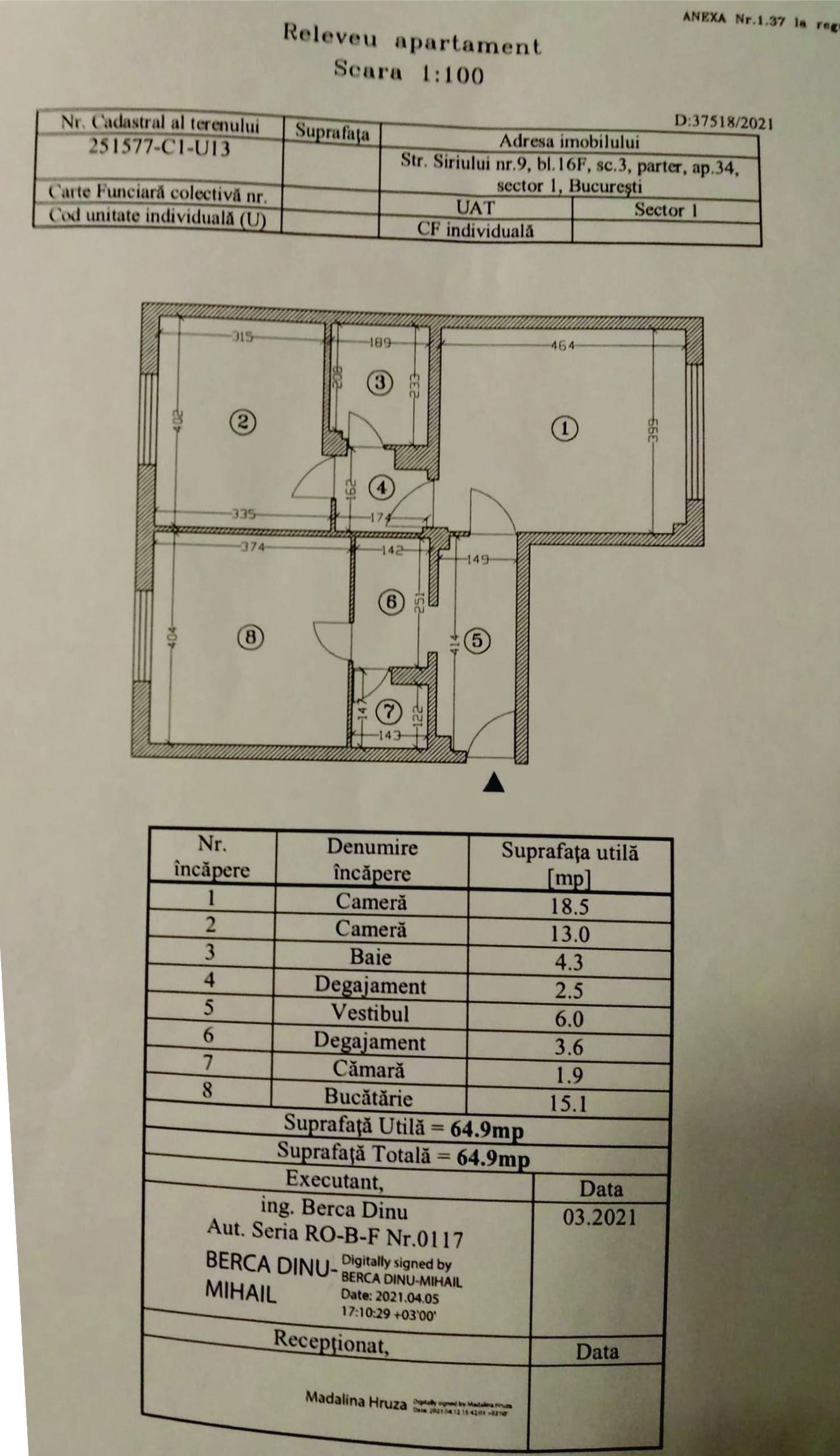 Compartimentare ce prezinta posibilitati facile de transformare in 3 camere si realizare a unui grup sanitar suplimentar. Apartamentul are in dotare centrala termica proprie, pe gaze, montata in decembrie 2023.