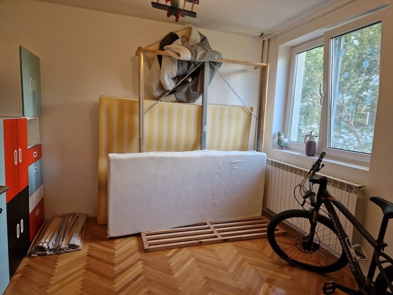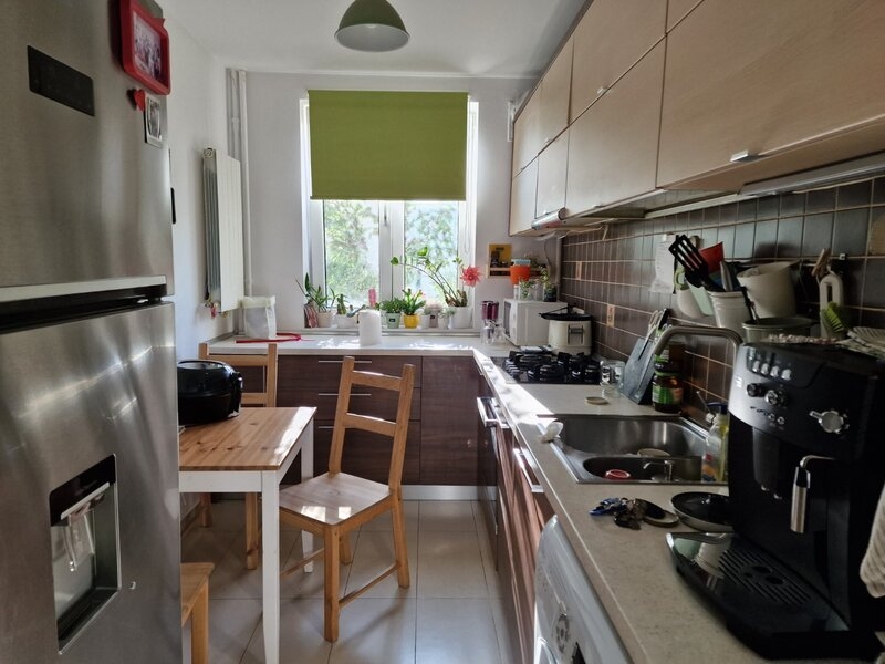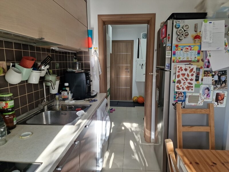Geam la baie. Apartamentul se vinde cu mobila de bucatarie. 5-7 minute metrou Titan,