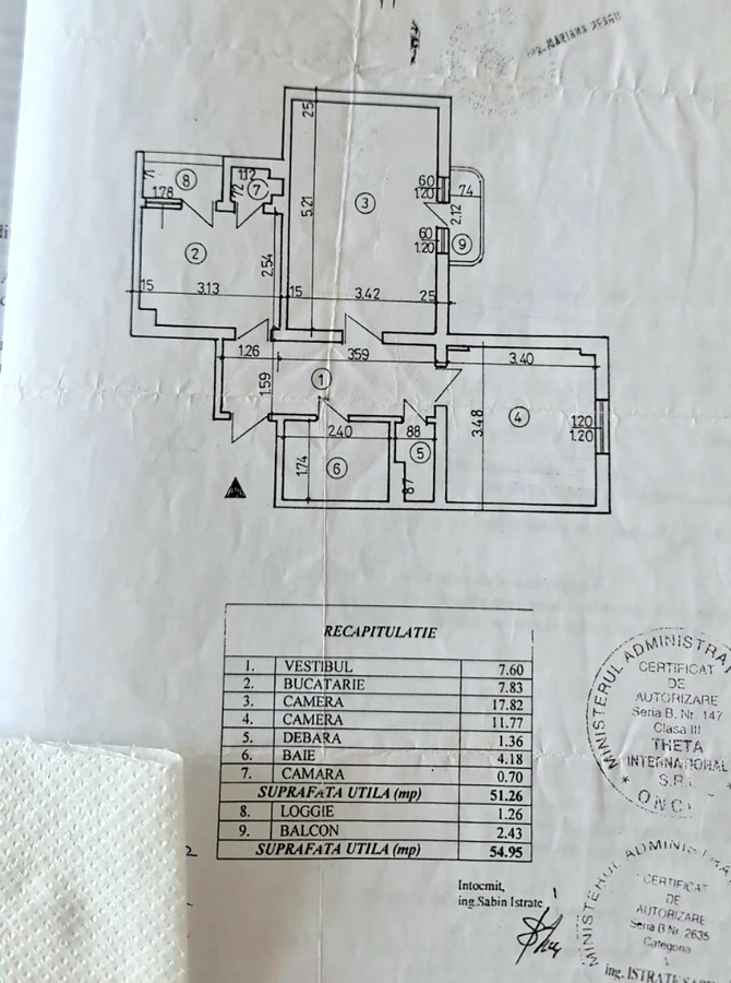 Optiuni interior: 2 grupuri sanitare Aer conditionat Apometre Balcon Centrala termica Contor gaze Debara Inst. sanitare noi Izolatie termica Termopan Usa metalica