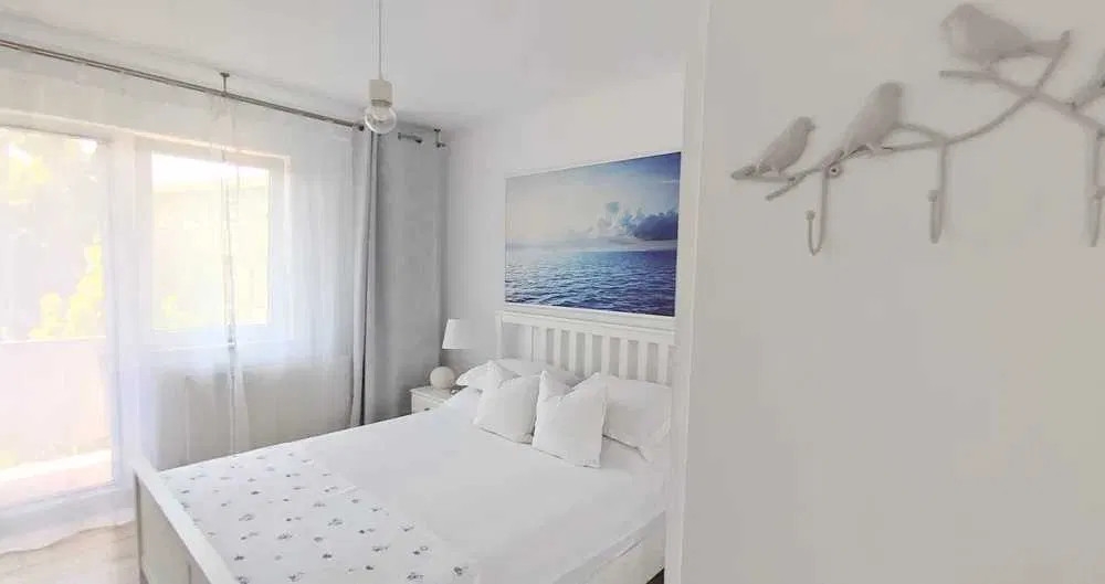 Va propunem spre vanzare un apartament cu 2 camere, utilat si mobilat complet, stil Scandinav, cu o suprafata totala de 55 mp (2 balcoane), in imobil 2017 tip boutique, la etajul 2 din 2 + Penthouse, la doar 6 minute distanta de Mega Mall.