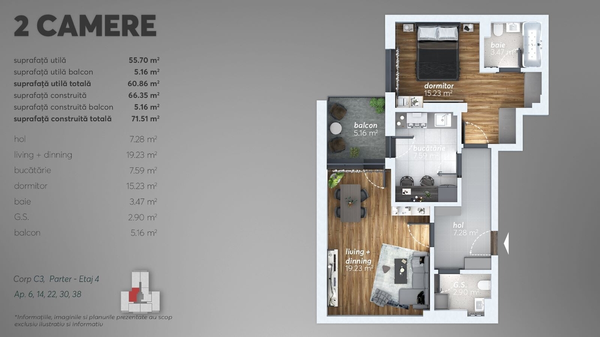 Deasemenea in bloc, mai sunt si alte modele de apartamente, puteti cere oferta personalizata la 0725 .. 957 .. 934