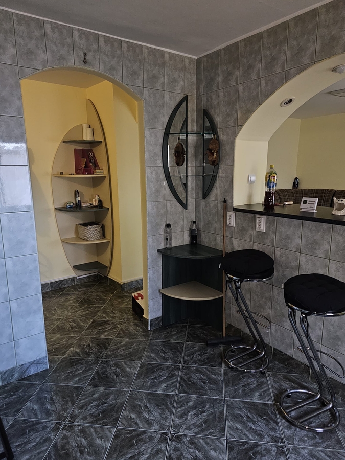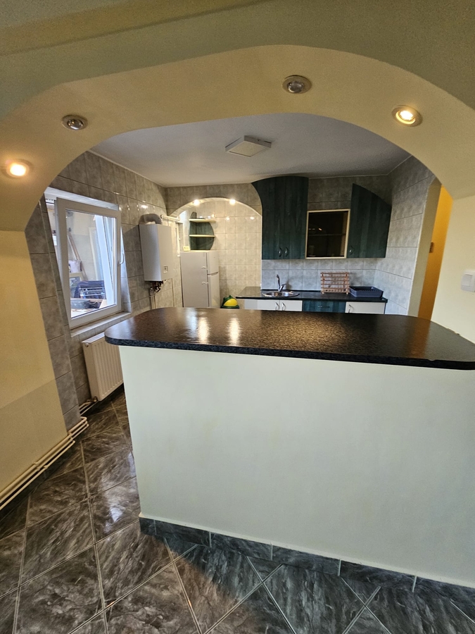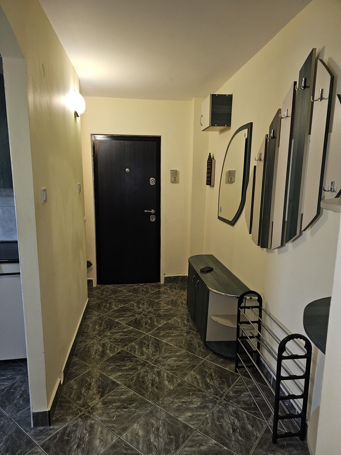 Apartamentul de 56 mp este situat la etajul 4 dintr-un bloc cu 4 niveluri, construit in 1982. Locuinta este gata de mutare, complet mobilata si dotata: masina de spalat, frigider, aragaz, cuptor si TV. Beneficiaza de balcon si debara, iar incalzirea este asigurata prin centrala termica proprie pe gaz.