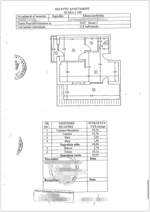 Alcatuit din 2 camere si dependinte, tip apartament decomandat, suprafata utila 69 mp, incluzand 1 terasa de 18 mp si 1 balcon de 3 mp, suprafata construita 80 mp.