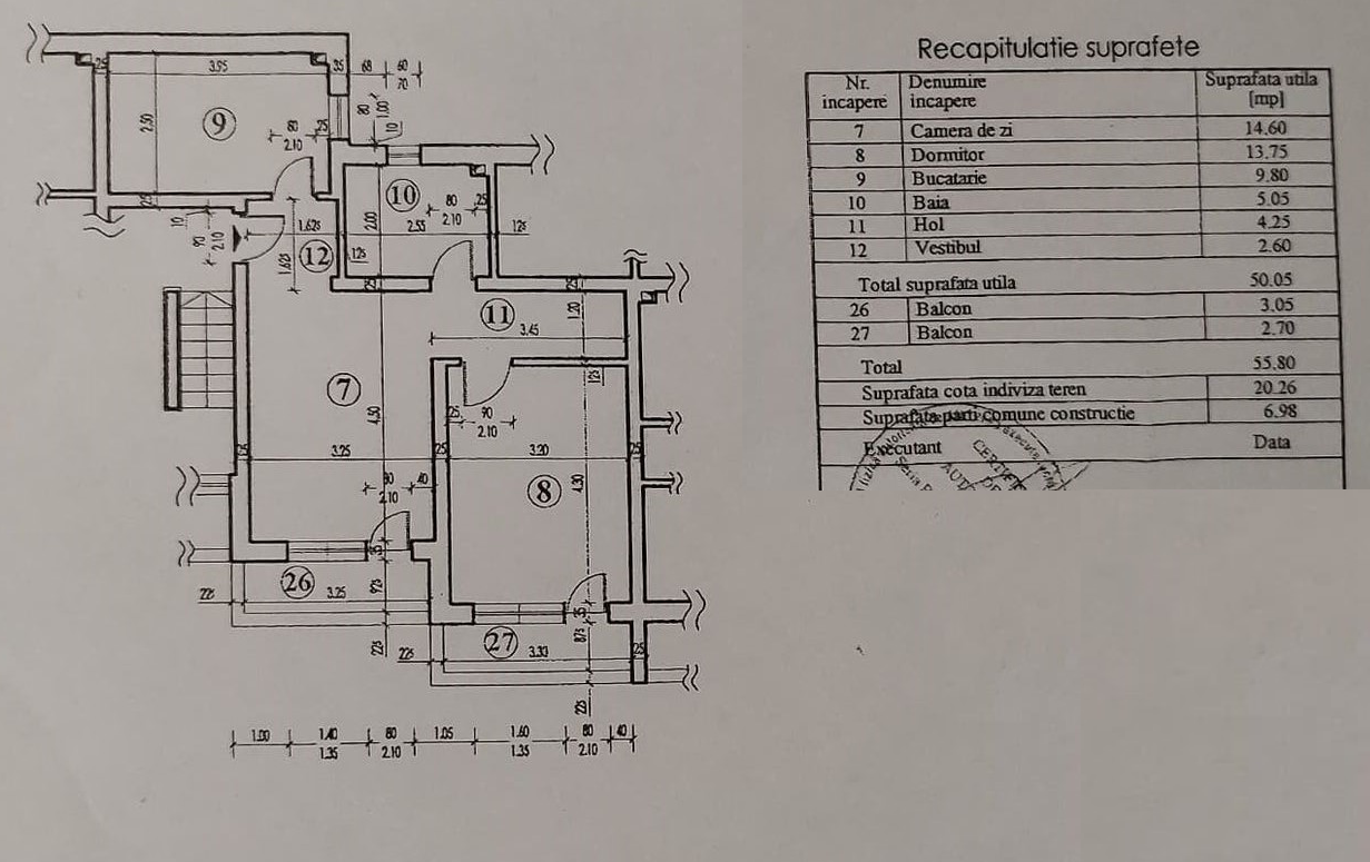 Apartamentul este luminos, cu o inaltime de 2,8m, are o suprafata utila de 50 mp, bucatarie inchisa, 2 balcoane (5 mp), se vinde partial mobilat si utilat. Dotari: parchet, gresie, faianta, geamuri termopane, usa metalica la intrare, aparat de aer conditionat si centrala termica proprie, dressing, electrocasnice in stare buna de functionare).