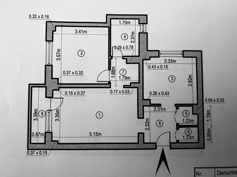 Alcatuit din 2 camere si dependinte, tip apartament semidecomandat, suprafata utila 52 mp, suprafata construita 55 mp.