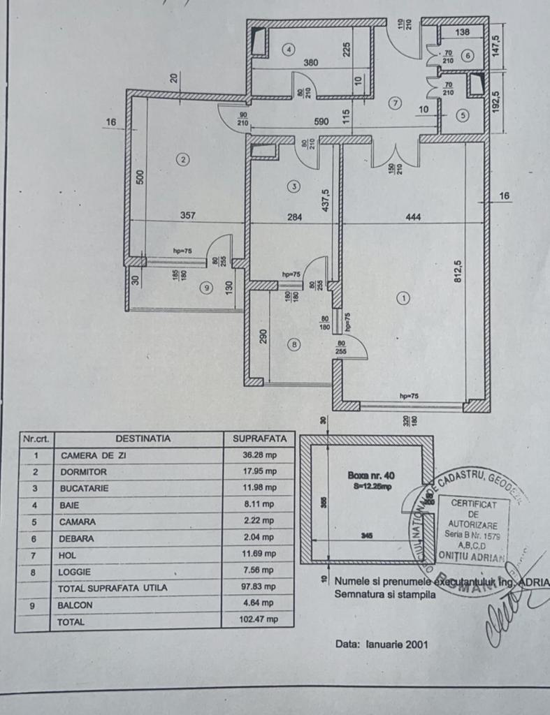 102,47 mp, centrala bloc, boxa in acte 20 mp, G+F+P+T+UM, intabulare, cadastru,