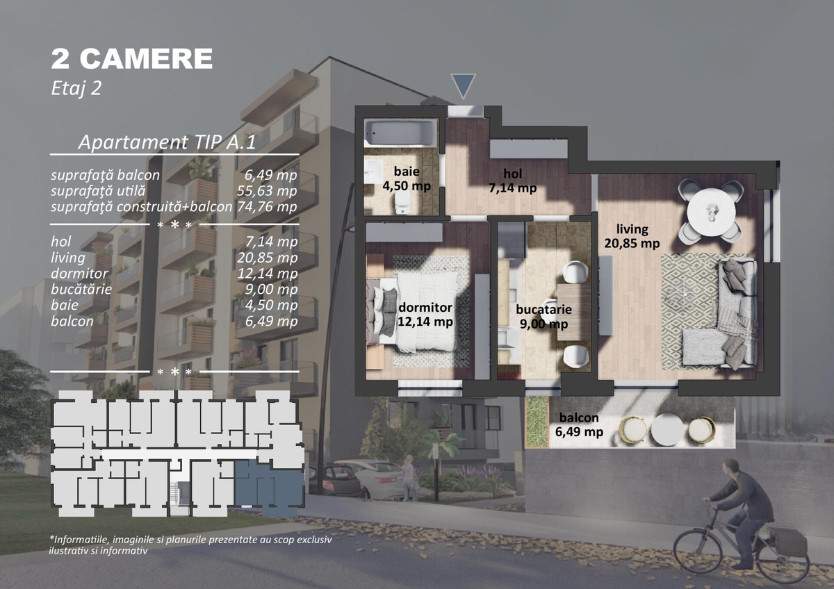 Vanzare apartament 2 camere, decomandat, spatios, amplasat intr-un bloc aflat in constructie.