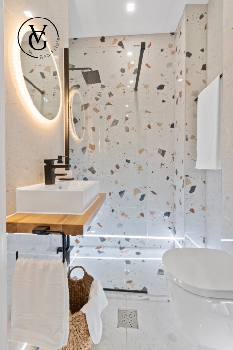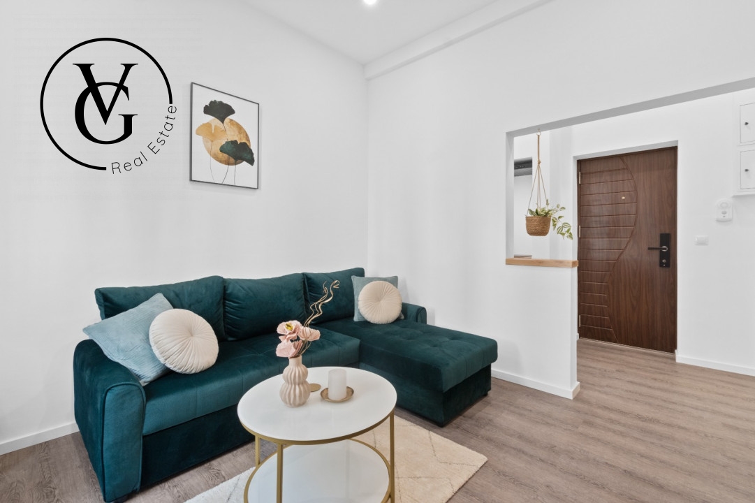 Apartamentul a fost renovat integral in anul 2023, folosindu-se materiale de calitate superioara importate din Germania, ceea ce ii confera un aspect elegant si modern. Beneficiaza de centrala proprie pe gaz si sistem de aer conditionat, asigurand un climat optim in orice sezon.