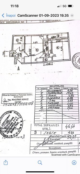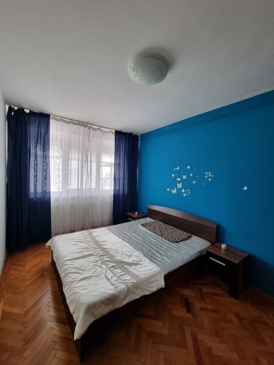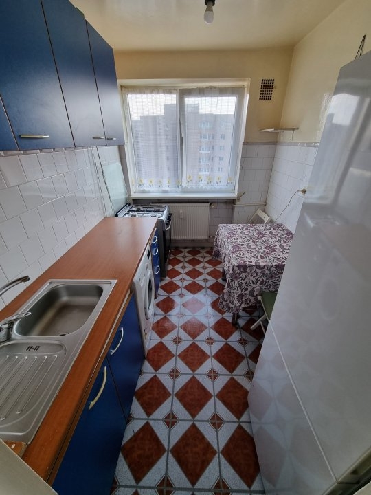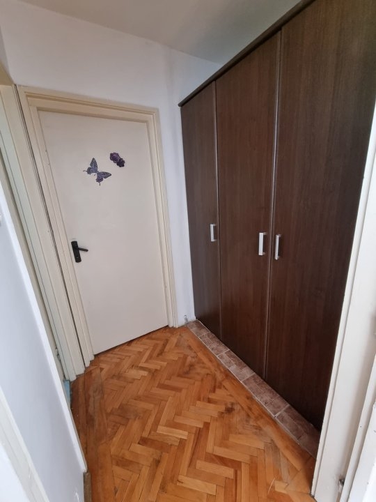 2 camere confort 1, etaj 9/9, suprafata 46 mp utili, plus 5 mp balcon inchis, semidecomandat, gresie faianta parchet termopan usa metalica mobilat liber acte fara pbl terasa