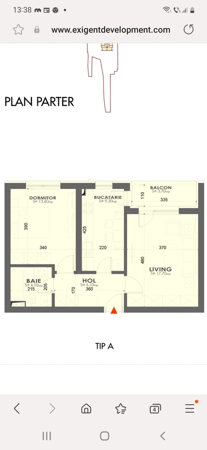 Camere: 2 camere, decomandat tip A ,55 mp