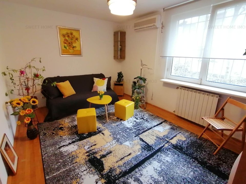Floreasca, Gioacchino Rossini, vanzare apartament de 2 camere, decomandat, etaj 1/3, suprafata 41 mp, renovat, mobilat si utilat complet, parchet masiv, alarma, centrala termica de apartament (costuri mici intretinere), aer conditionat, pozitionat pe mijlocul blocului cu vedere spre curtea verde din spatele blocului, acces facil zona de nord dar si de centru a capitalei, 6-7 min pana la metrou Stefan cel Mare, zona verde - Parcul Circului si Baza Sportiva Dinamo, Spitalul de Urgenta Floreasca in vecinatate. Apartamentul este disponibil imediat - mutare rapida, acte la zi, cash/ credit, comision agentie 2%, pret 89.999 euro.
