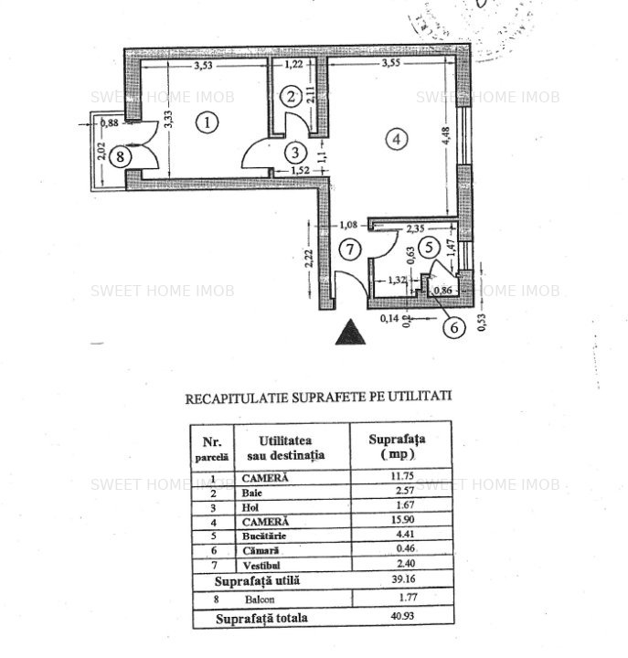 Optiuni interior: Aer conditionat Alarma Apometre Balcon Centrala termica Contor gaze Termopan Usa metalica