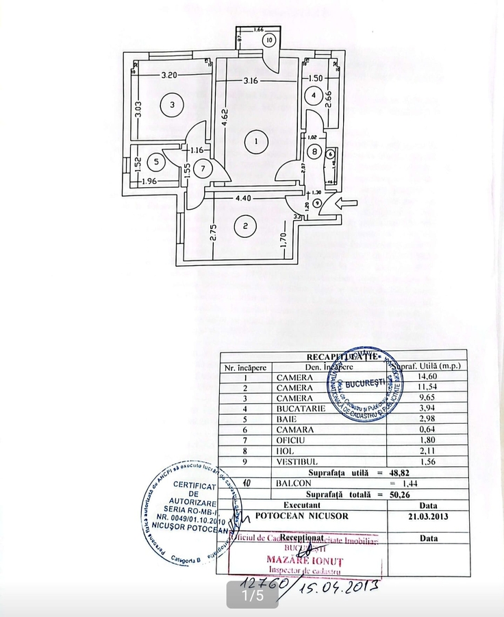 Compartimentare practica: living, 2 dormitoare, baie cu geam, bucatarie si balcon inchis