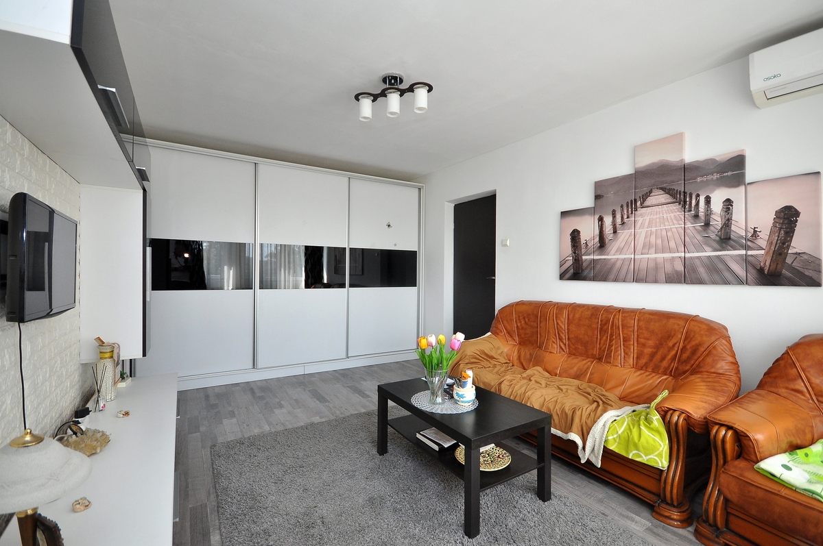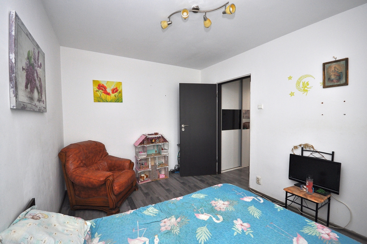 Apartamentul se poate vinde mobilat si utilat complet, prezinta finisaje cu gresie, faianta, parchet, termopan, usi interior schimbate, pereti izolati in exterior.