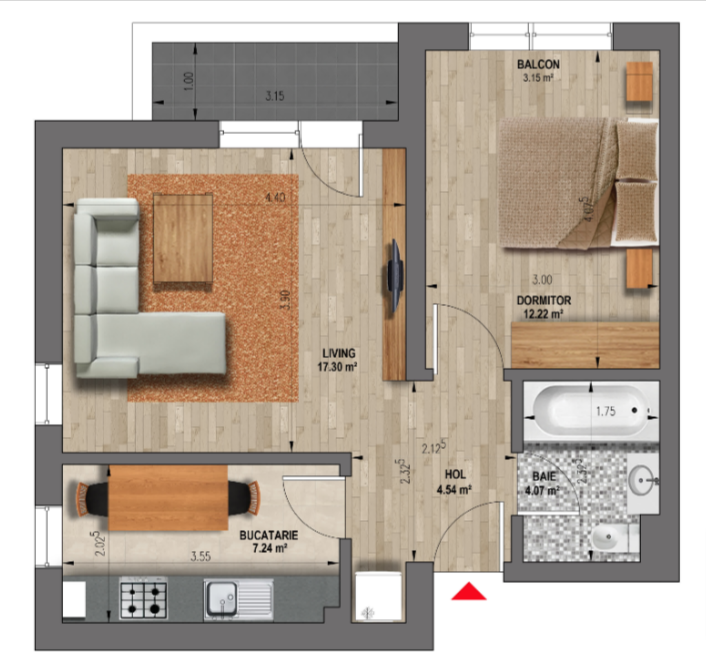 Optiuni interior: Balcon Centrala termica Contor gaze Inst. electrice noi Inst. sanitare noi Izolatie termica Termopan Usa metalica