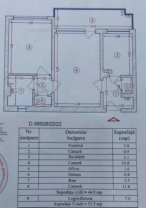 Militari, zona Piata Gorjului, confort 1, semidecomandat, etaj 9/9, suprafata 52,5 mp, are centrala termica, usa metalica, balcon inchis in termopan, calorifere aluminiu, necesita renovare + alte imbunatatiri, bloc fara risc seismic, aflat in apropiere de mijloace de transport in comun si statia de metrou Gorjului, cadastru si intabulare, pret 47000 E,