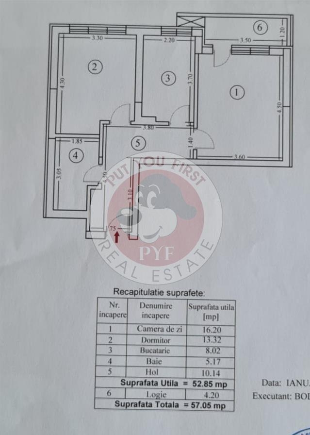 Suprafata totala: 57 mp